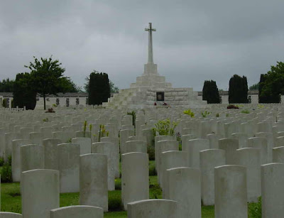 In February of 1915 during one of the innumerable back and forth battles near Ypres his unit assaulted the German trench works. The attack was repelled with the customary horrific casualties but Guy made it back to his own trench unharmed. When he looked back over the battlefield known as no man’s land between the opposing trench lines he saw amongst the human wreckage of war one of his close friends lying wounded. The odds of surviving in no man’s land were not good since neither side respected stretcher bearers or medics. The wounded were usually left to die. Guy leapt out of the relative safety of his trench and rushed forward to save his buddy. He reached him and under heavy fire dragged him back to the trench. After lowering the wounded soldier down Guy turned to drop down himself when he was shot in the stomach. He died several days later at a military hospital and was buried in one of the vast cemeteries near Ypres created by the carnage of the War to End All Wars.